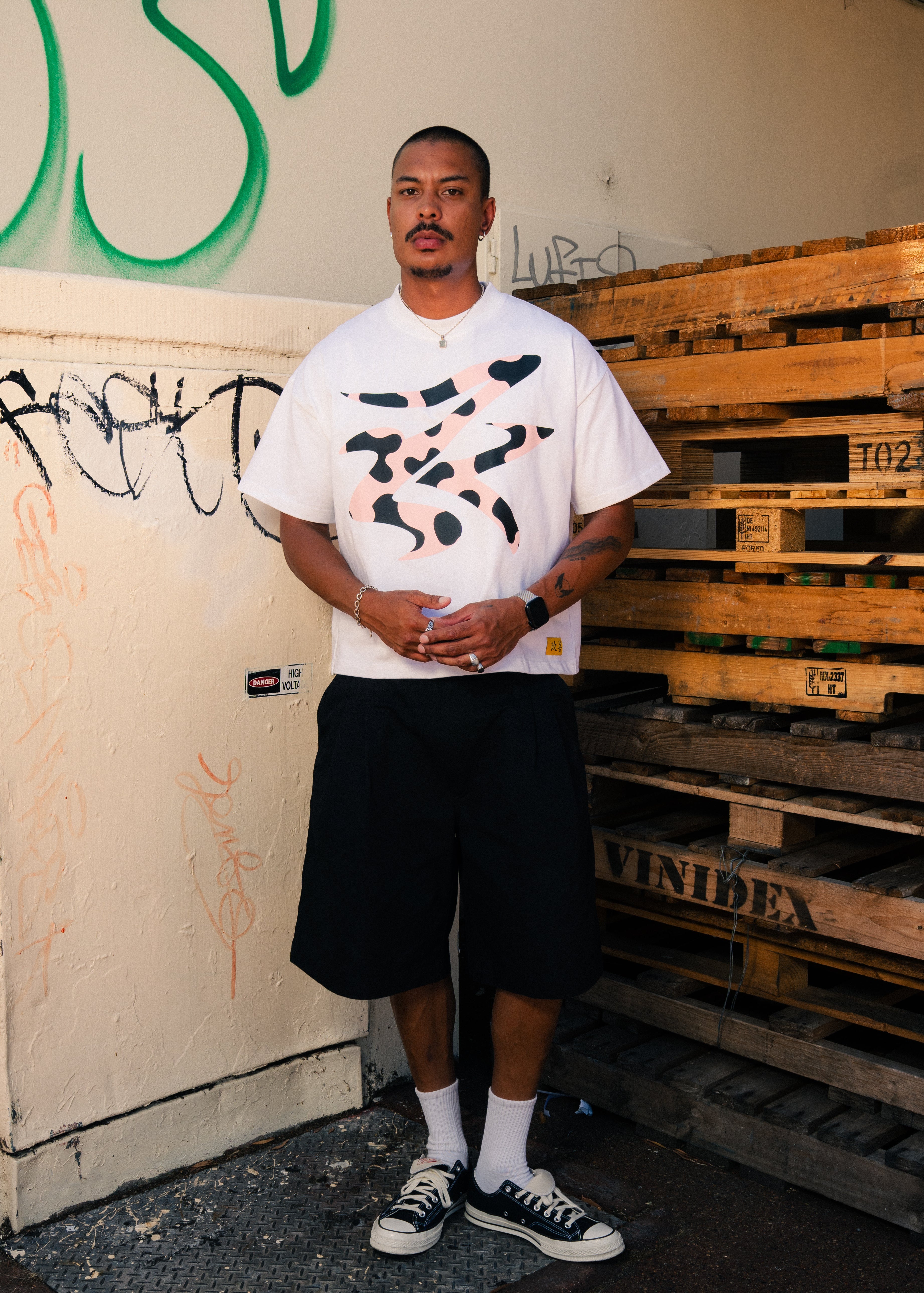 THE CONCEPT T-SHIRT IS CRAFTED WITH A HEAVYWEIGHT COTTON JERSEY FABRIC IN A BOXY & SLIGHTLY OVERSIZED FIT. IT FEATURES A HAND STITCHED 'KAIZEN' EMBROIDERY AT THE BACK NECK AND ANIMAL SCREEN PRINT DESIGN ON THE FRONT.