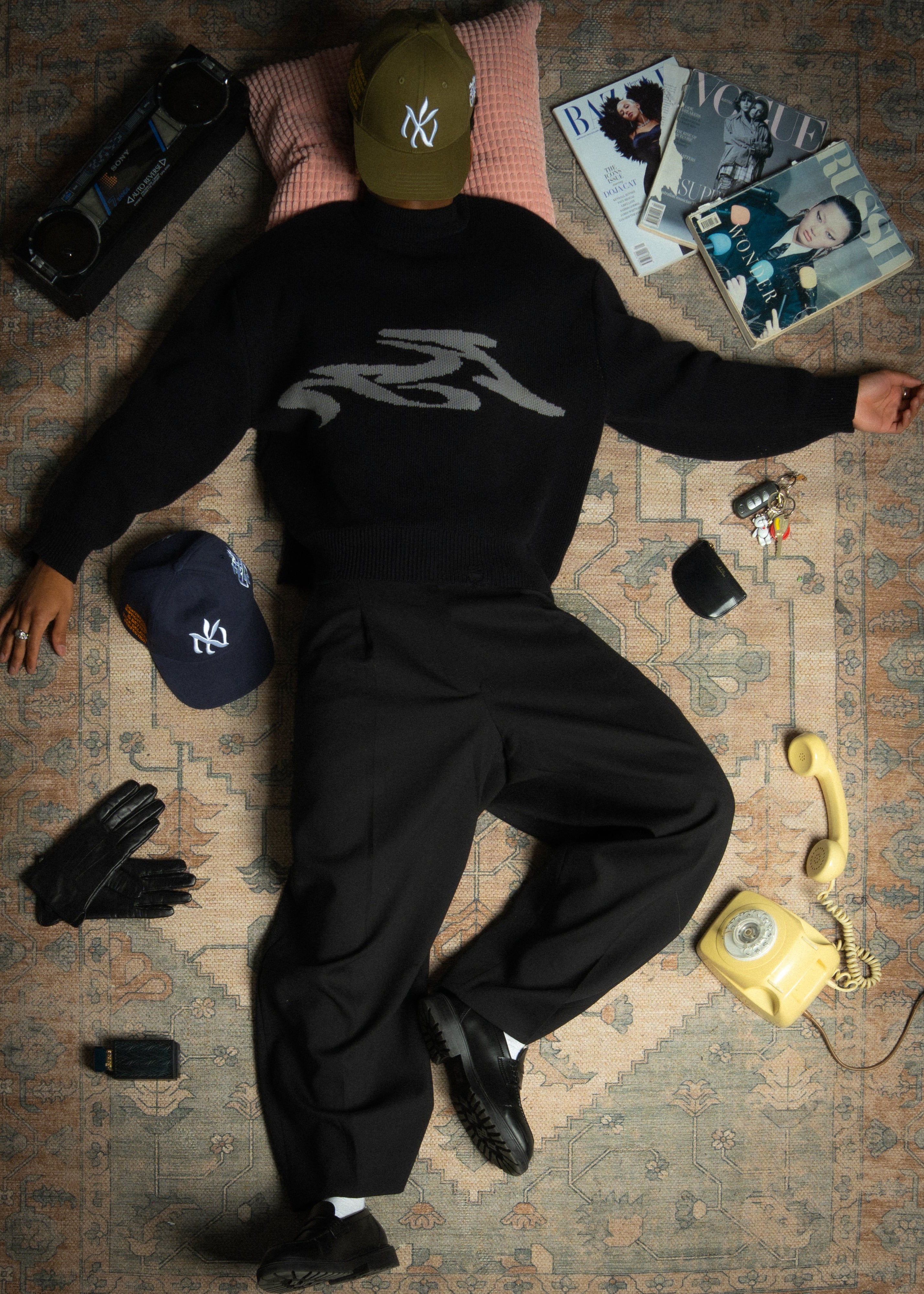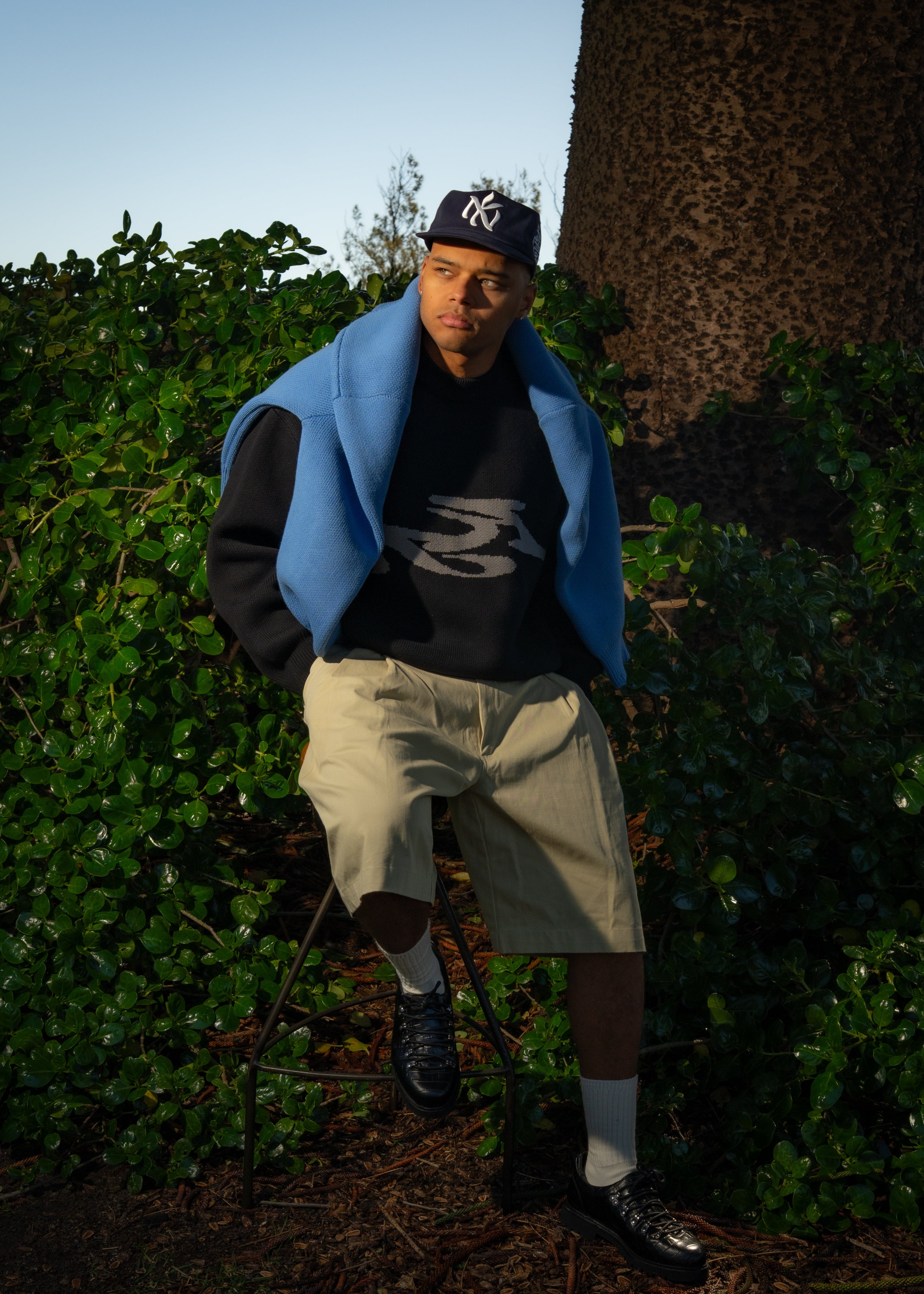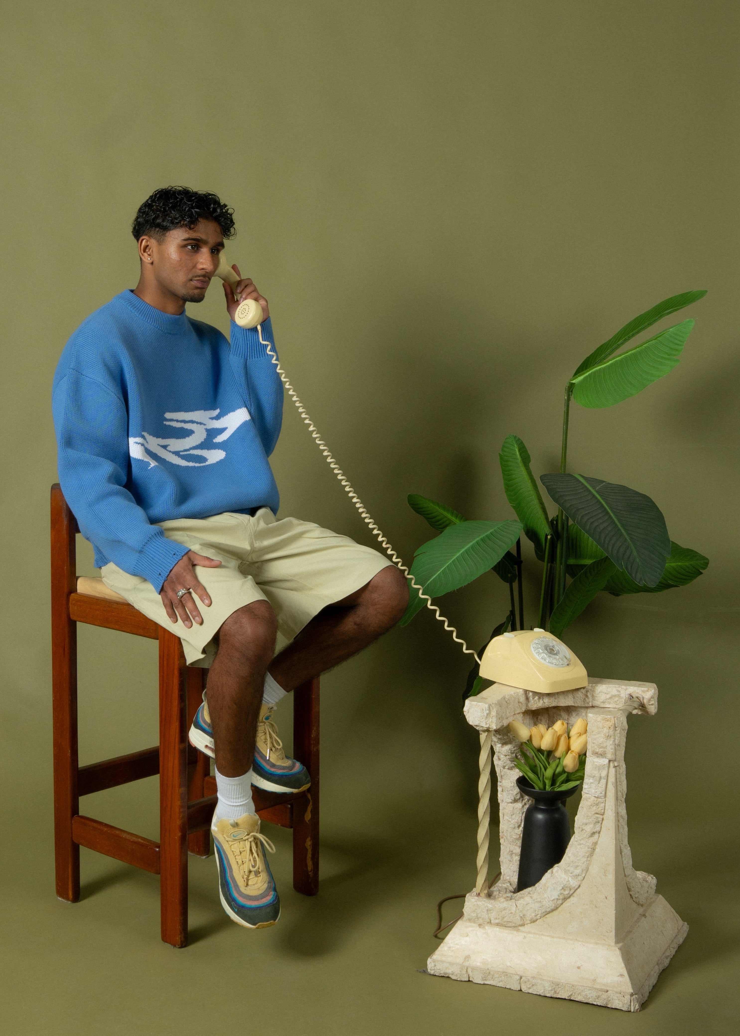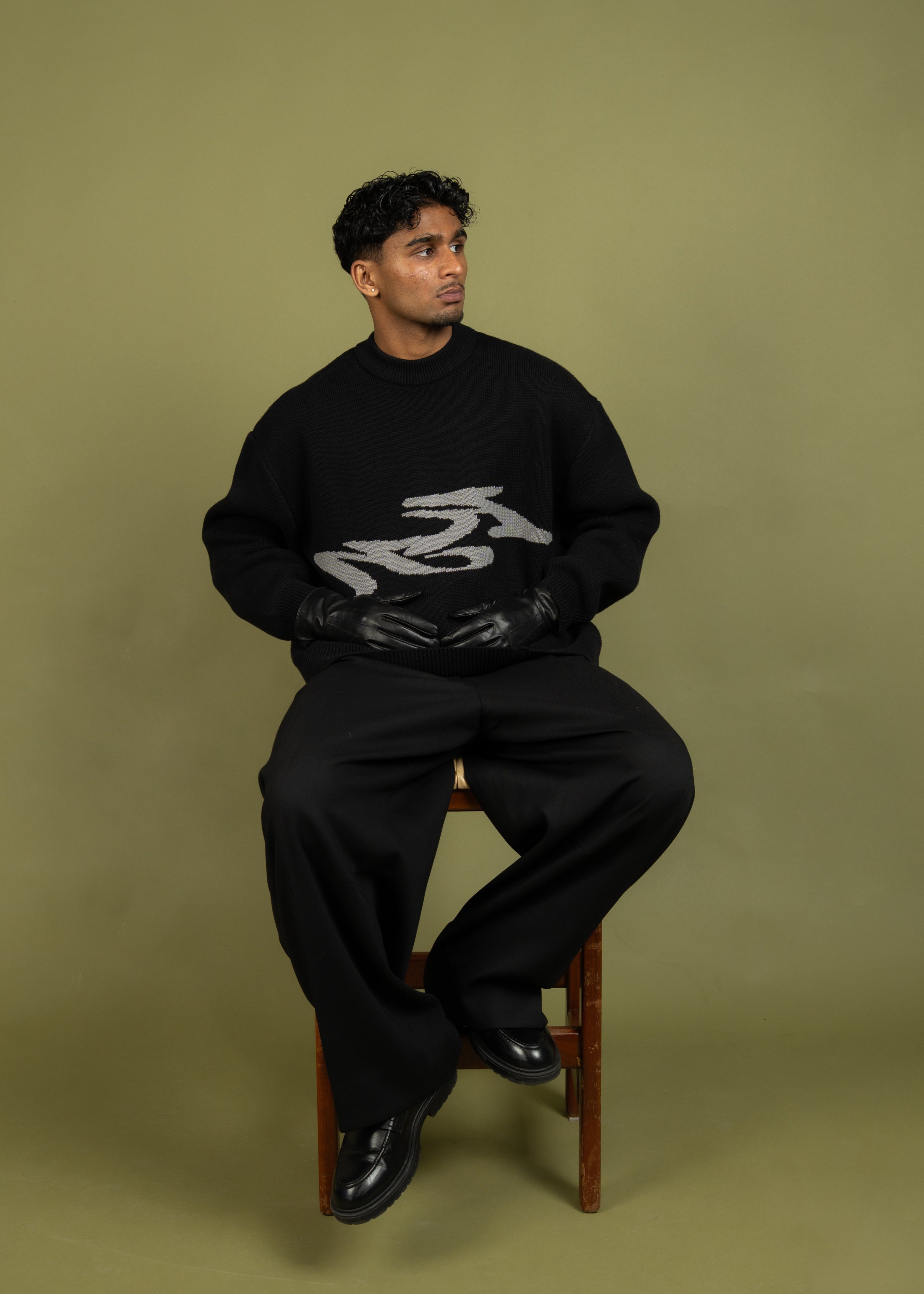 THE SEVERED KNIT IS CONSTRUCTED WITH A 5-GAUGE 100% COTTON YARN. FEATURING A JACQUARD DESIGN AND MINIMAL DISTRESSING ON THE HEM AND CUFFS.