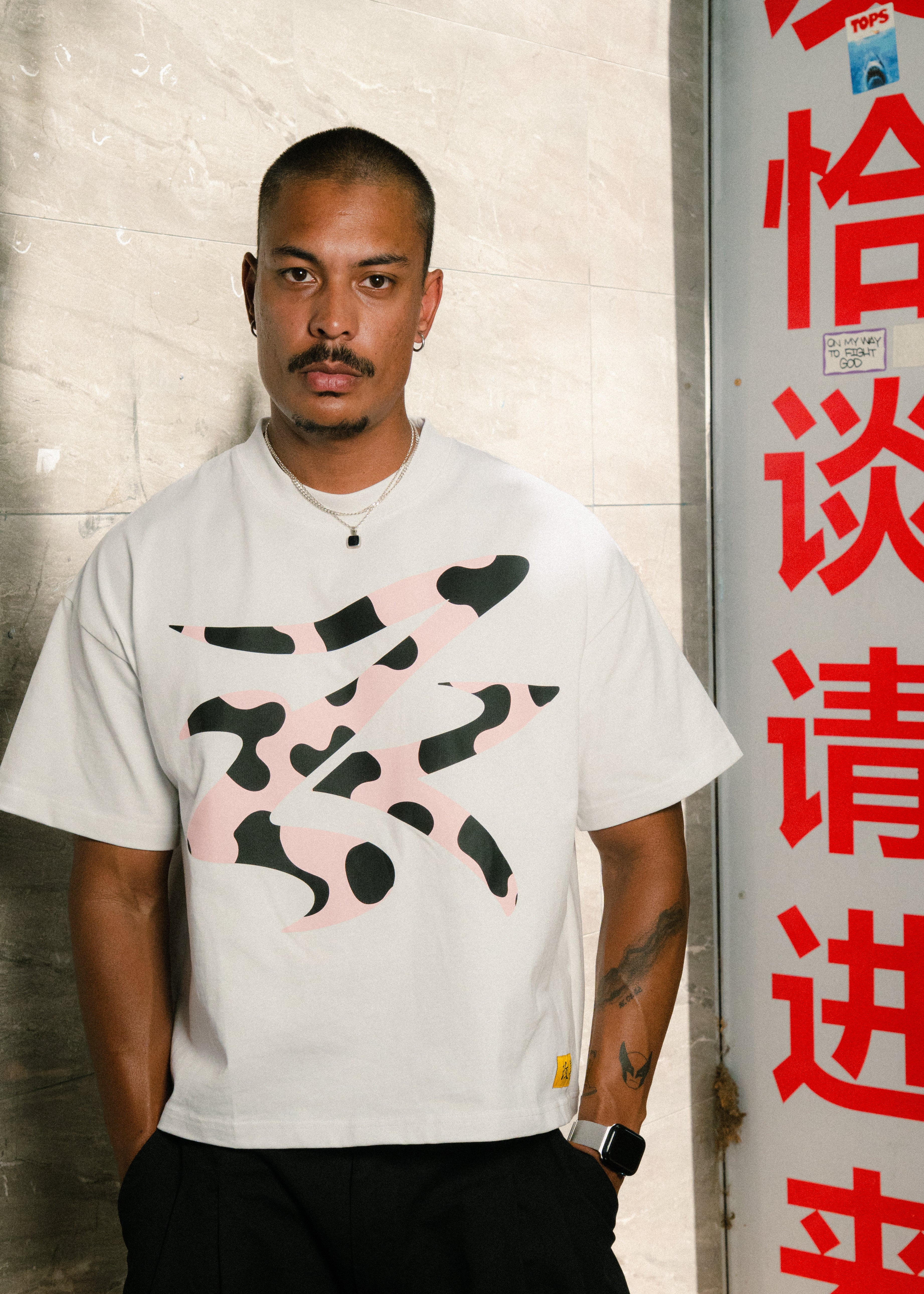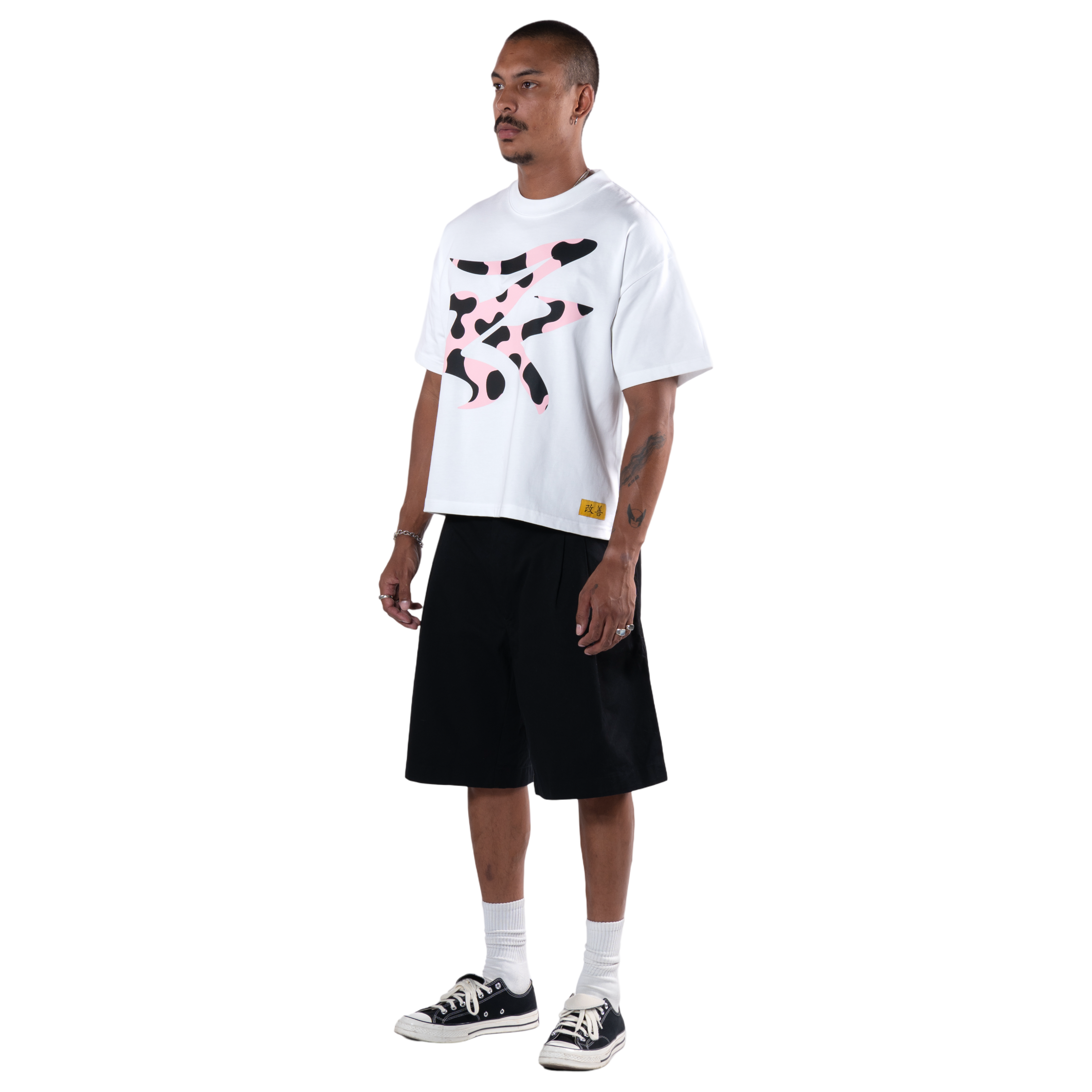 THE CONCEPT T-SHIRT IS CRAFTED WITH A HEAVYWEIGHT COTTON JERSEY FABRIC IN A BOXY & SLIGHTLY OVERSIZED FIT. IT FEATURES A HAND STITCHED 'KAIZEN' EMBROIDERY AT THE BACK NECK AND ANIMAL SCREEN PRINT DESIGN ON THE FRONT.